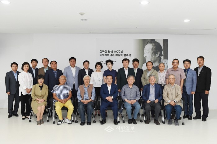 지난 11일 경기 양주시는 양주시립장욱진미술관에서 '장욱진 화백 탄생 100주년 기념사업'을 위한 추진위원회 발족식을 개최했다. 사진은 이성호 시장(앞줄 가운데)을 비롯한 관계자들이 기념촬영을 하는 모습.(사진제공=양주시청)