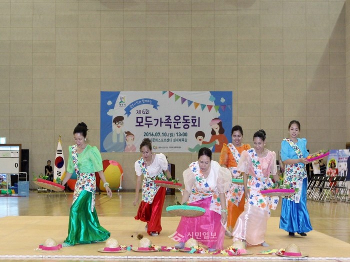 최근 경기 광주시는 문화스포츠센터 실내체육관에서 건강가정·다문화가족지원센터 주관으로 '제6회 모두가족운동회'를 개최했다. 사진은 필리핀·베트남 자조모임에서 전통춤을 선보이고 있는 모습.(사진제공=광주시청)