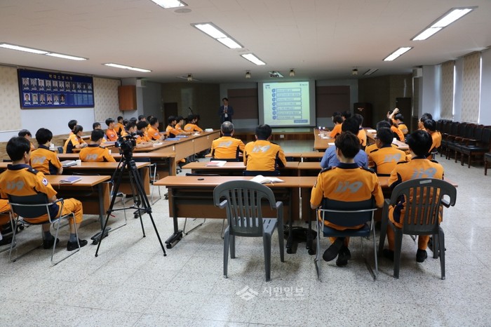 14일 경기 군포소방서는 대회의실에서 직원 60여명이 참석한 가운데 경기도 청렴경기팀장 김종구 사무관을 초청해 청렴도 향상을 위한 교육을 실시했다. 사진은 김 사무관이 직원들에게 강연하는 모습.(사진제공=군포소방서)