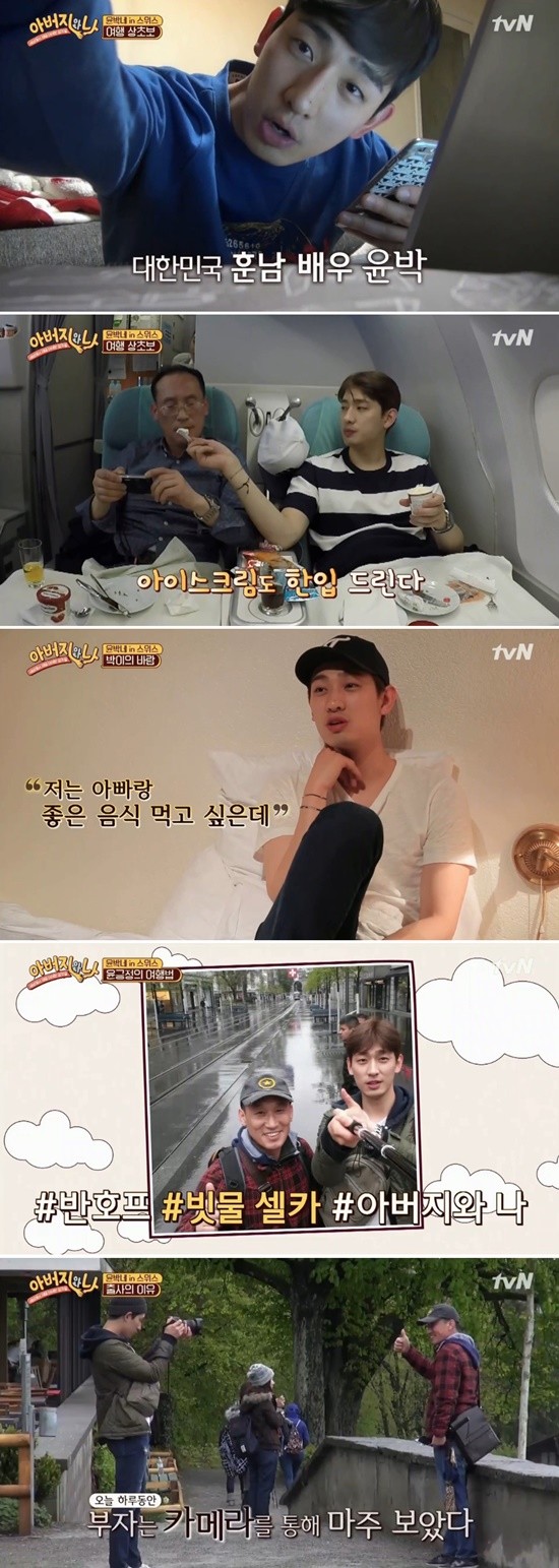 윤박은 14일 방송된 tvN 예능프로그램 ‘아버지와 나’에서 스위스로 첫 해외여행을 떠났다.