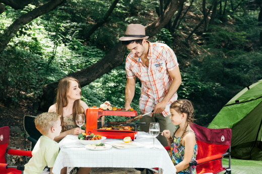 전기 유무에 상관없이 캔 가스(부탄 등)로 조리가 가능하여 휴대가 간편하고 간편하게 세척 할 수 있으며 야외 캠핑, 가정 등 어디에서나 바비큐 요리를 즐길 수 있다.