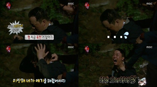 특히 어두운 밤 산 속을 헤매던 정준하와 유재석은 영화 ‘곡성’의 괴물 분장을 한 사람을 보고 크게 당황했다.
