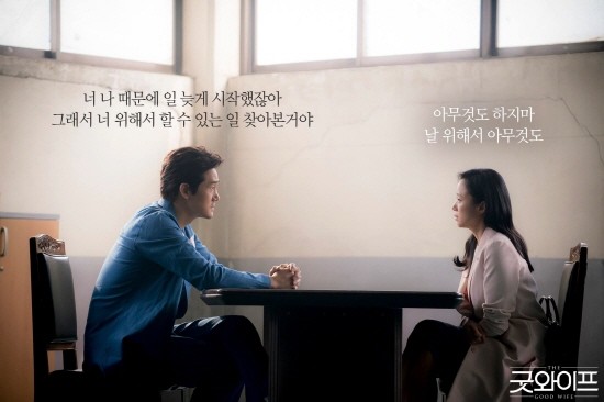 tvN 드라마 '굿와이프(극본 한상운, 연출 이정효)'는 검사 남편 이태준(유지태 분)이 정치 스캔들과 부정부패로 구속되자 결혼 이후 일을 그만두었던 아내 김혜정(전도연 분)가 가정의 생계를 책임지기 위해 변호사로 복귀하는 내용을 담고 있다.
