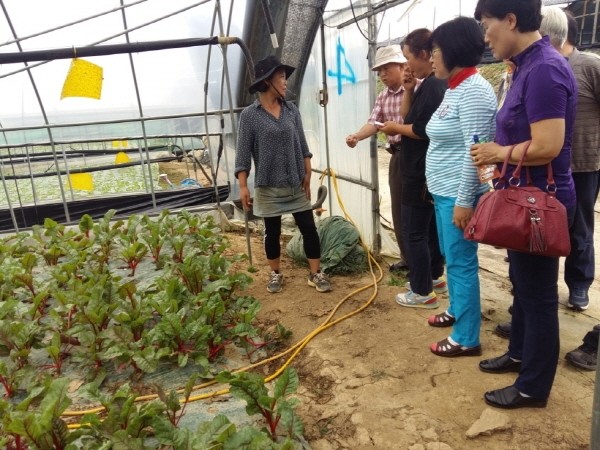 최근 경기 안성시농업센터는 녹색농업대학 유기농업반 수강생을 대상으로 지역내 친환경농업을 실시하는 농가를 방문해 현장교육을 실시했다. 사진은 수강생들이 농가를 방문해 견학하고 있는 모습.(사진제공=안성시청)