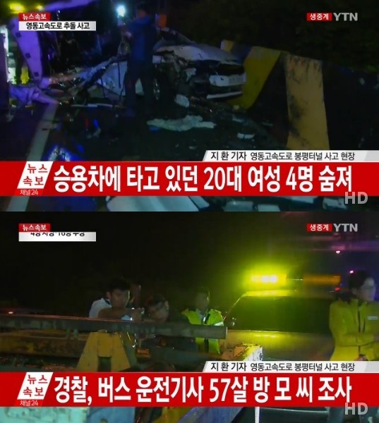 다행히 버스 탑승객과 운전자는 경미한 부상에서 그쳤지만 K5 탑승자 20대 여성 4명의 사망과 운전자가 중상을 입었다.