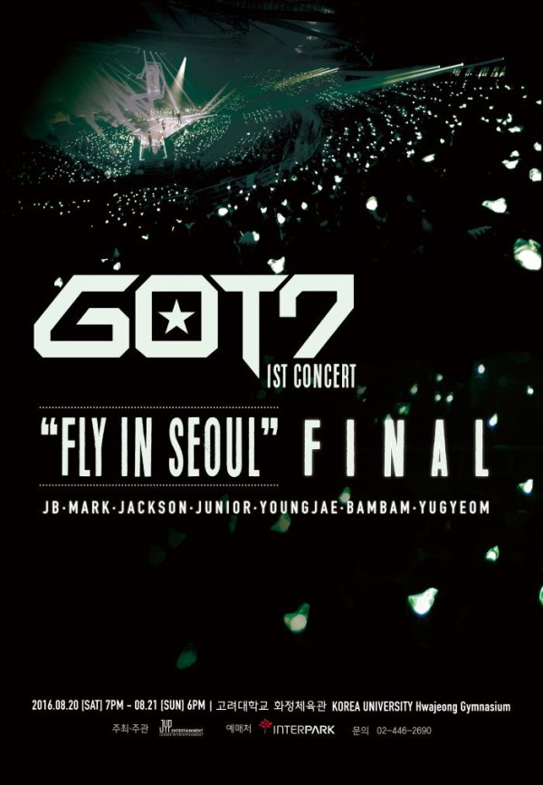 갓세븐은 18일 JYP엔터테인먼트 공식 SNS를 통해 'FLY IN SEOUL-FINAL(플라이 인 서울-파이널)' 콘서트 포스터를 공개와 함께 오는 8월 20일과 21일 이틀 동안 서울 고려대학교 화정체육관에서 개최되는 앙코르 공연 개최 소식을 알렸다.