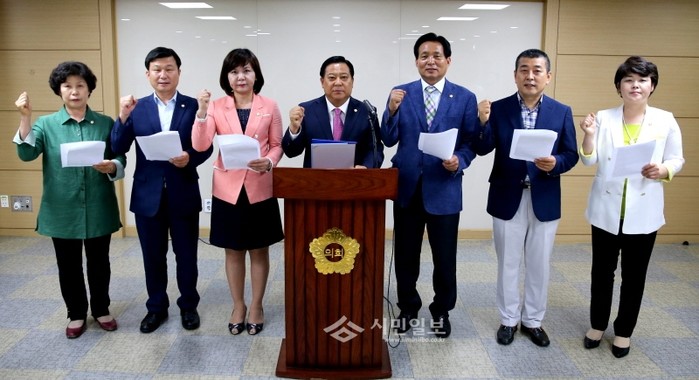 [수원=임종인 기자]경기 수원시의회가 18일 오전 의회세미나실에서 ‘국방부는 수원 군공항 예비이전 후보지를 조속히 발표하라’는 내용의 성명서를 발표했다.