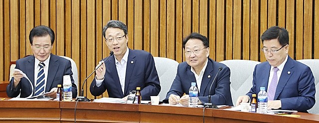 국민의당 김성식 정책위의장이 18일 오전 국회에서 열린 유일호 경제부총리 겸 기획재정부 장관과 여야 3당 정책위의장 간 제3차 민생경제점검회의를 주재하고 있다.