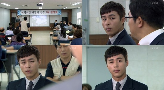 민선호의 설명을 들은 유강우는 그를 뚫어져라 쳐다봤다. 1차 설명회에서 상인들의 신뢰를 얻은 쪽은 민선호.자신의 패배를 느낀 유강우는 찹착한 마음을 감추지 못했다.