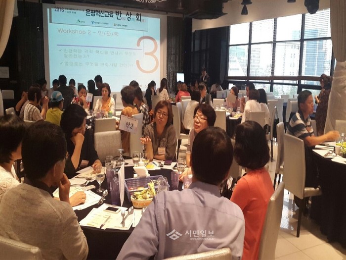 최근 서울 은평구는 서울형혁신교육지구사업의 일환으로 민·관·학이 함께 혁신교육의 발전방향에 대해 논의하는 '은평혁신교육 반상회'를 개최했다. 사진은 참가자들이 토론을 진행하고 있는 모습.(사진제공=은평구청)