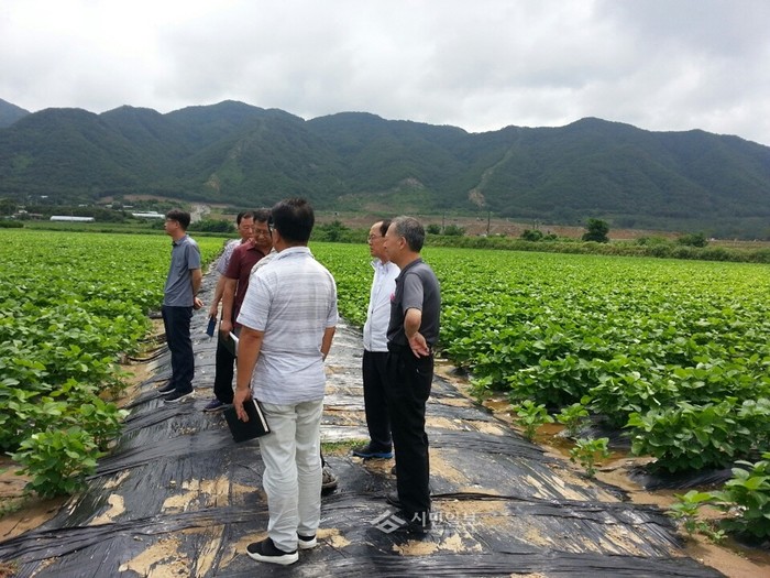 경기 연천군 농업기술센터는 최근 농촌지도시범사업 상반기 현장순회 점검을 실시했다. 사진은 관계자들이 농촌지도시범사업 지역을 방문해 살펴보고 있는 모습.(사진제공=연천군청)