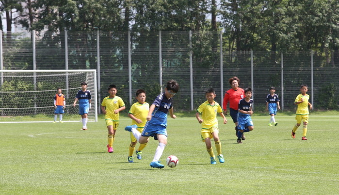 지난 19일 마포구는 상호 우호협력 증진 및 친선축구경기 개최를 위해 중국 석경산구 청소년 축구단을 초청했다. 사진은 상지초등학교 축구단과 석경산구 축구단이 상암동 월드컵 보조경기장에서 경기를 펼치고 있는 모습.(사진제공=마포구청)
