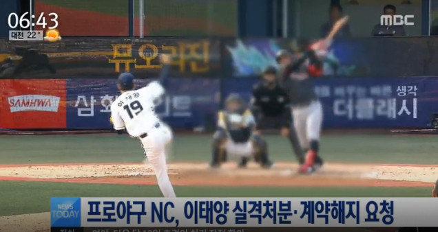 프로야구 NC다이노스는 20일 "이태양을 국민체육진흥법 위반 혐의로 불구속 수사중이다."라며 이태양에 대해 실격처분을 내리기로 했다.