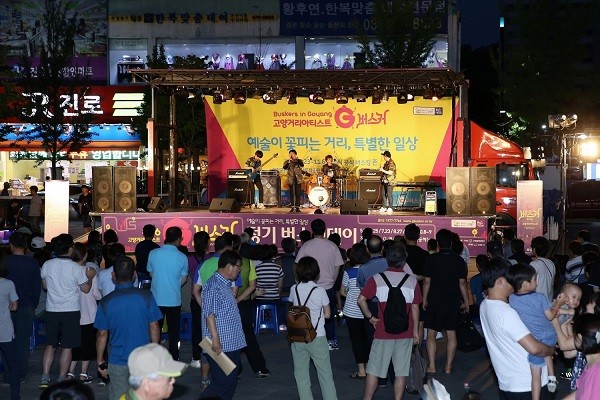 같은 시각, 달맞이섬 입구의 ‘라이브 스트리트’ 무대에서는 G-버스커 상설거리공연에서 시민들과 자주 만나며 세대별로 큰 공감을 얻고 있는 음악팀 3팀의 라이브 공연이 펼쳐진다.