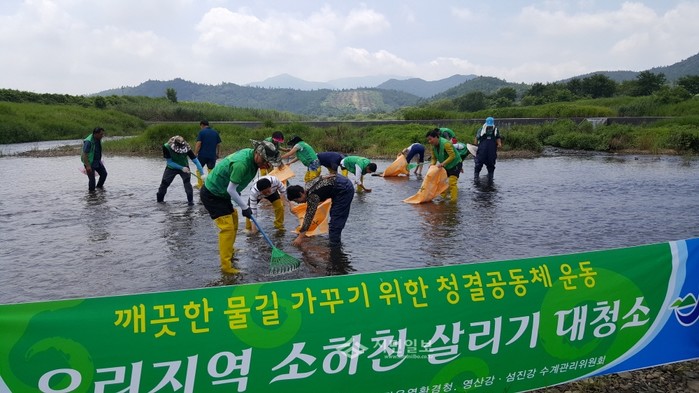 지난 19일 전남 장흥군새마을회는 우리지역 깨끗한 물길가꾸기 사업의 일환으로 새마을지도자장흥군협의회, 장흥군새마을부녀회와 함께 장평천 정화활동을 실시했다. 사진은 관계자들이 하천 내 쓰레기를 수거하는 모습.(사진제공=장흥군청)