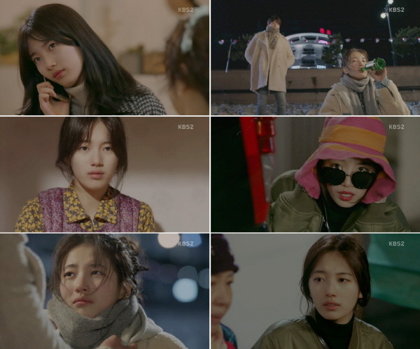 21일 방송된 KBS2 '함부로 애틋하게(극본 이경희, 연출 박현석)' 6회에서 배수지는 숨겨온 코믹 본능을 발휘했다. 극중 신준영(김우빈 분)과의 스캔들 때문에 바닷가까지 오게된 노을(배수지 분)은 속상한 마음에 소주 다섯 병을 원샷하는 기염(?)을 토했다.