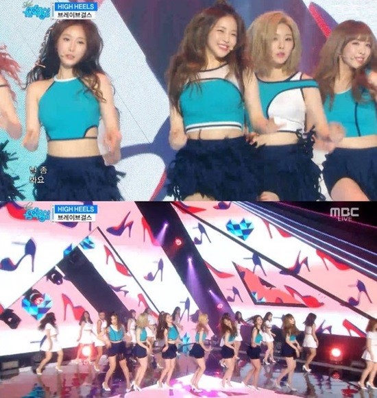 브레이브걸스 멤버들은 푸른색 계열의 스포티한 의상에 흰색 하이힐을 신고 무대에 올라 세 번째 미니앨범의 타이틀곡 '하이힐'을 열창했다. '하이힐'은 강렬한 일렉기타 사운드를 중심으로 경쾌한 리듬과 훅에 반복되는 브라스의 멜로디가 인상적인 곡이다.