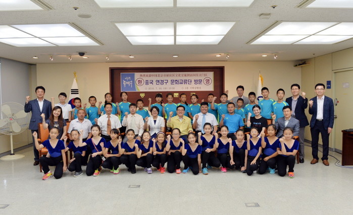 최근 동대문구의 자매결연지인 중국 북경시 연경구 대표단이 구청을 방문해 간담회 등의 행사에 참석했다. 사진은 유덕열 구청장(둘째줄 오른쪽에서 다섯번째)과 관계자들이 기념촬영하는 모습.(사진제공=동대문구청)
