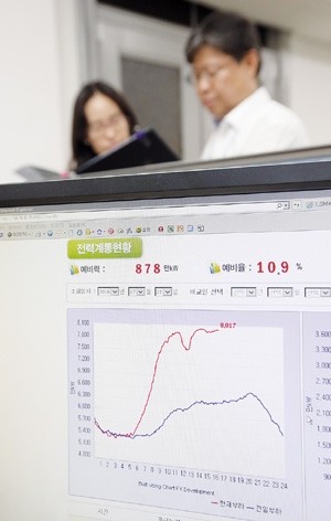 25일 한국전력공사 서울지역본부 하계 전력수급 비상대책 상황실에서 직원들이 업무를 보고 있다. 연일 찜통더위가 이어지면서 전력 수요가 여름철 사상 최고치를 경신, 전력거래소에 따르면 이날 오후 3시 최고전력수요가 8022만㎾로 뛰어 여름철 기준 역대 최고 수치를 기록했다.