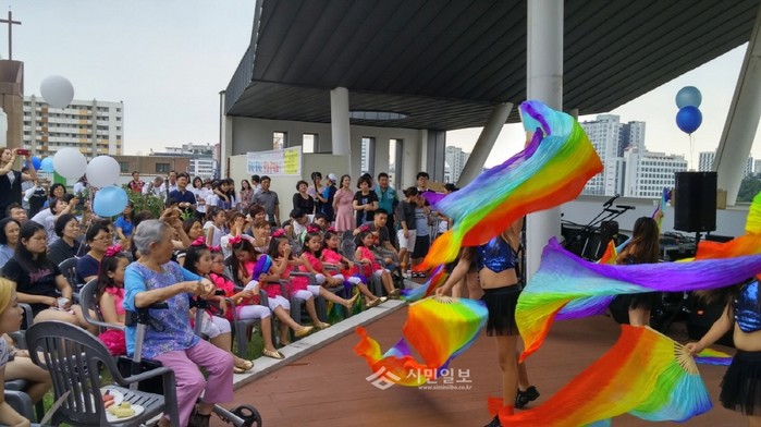 최근 경기 안산시 고잔2동 주민자치위원회는 동주민센터 옥상에서 120여명의 주민이 참석한 가운데 '우리동네 왁자지껄 미니콘서트'를 개최했다. 사진은 행사를 방문한 주민들이 공연을 관람하고 있는 모습.(사진제공=안산시청)