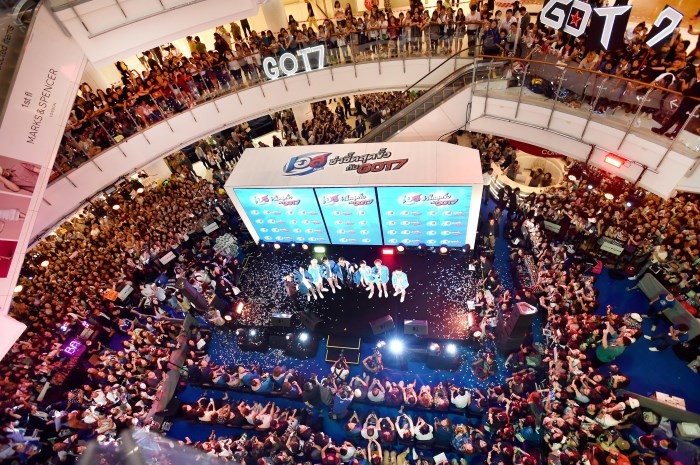 GOT7은 지난 22일 방콕 대형 쇼핑몰 센트럴월드에서 'Est Cola' 광고모델 발탁 기자회견을 진행했다. 이날 행사장에는 GOT7을 보기 위해 많은 인파가 몰려 일대가 마비되는 등 현지 인기를 실감할 수 있었다.