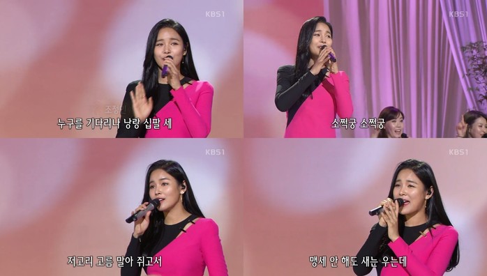 가수 조정민이 1일 오후 10시에 방송된 KBS1 '가요무대'에 출연해 '낭랑18세'의 아름다운 무대를 꾸몄다.