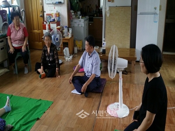 최근 경기 동두천시 중앙동주민센터는 지역내 경로당 6곳을 방문해 제철과일을 전달하고 노인들의 안부를 살폈다. 사진은 관계자가 노인들과 이야기를 나누는 모습.(사진제공=동두천시청)
