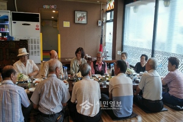 지난 2일 경기 안산시 원곡본동은 지역내 19곳 경로당 회장들이 참석한 가운데 간담회를 개최했다. 사진은 새로 부임한 원곡본동장이 경로당 회장들과 오찬을 함께하며 이야기를 나누는 모습.(사진제공=안산시청)