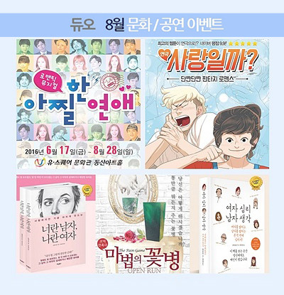 업체 측이 마련한 ‘8월 문화 이벤트’는 연극 ‘사랑일까’, ‘마법의 꽃병’과 뮤지컬 ‘아찔한 연애’를 비롯한 연애 심리 도서를 증정하는 행사다.