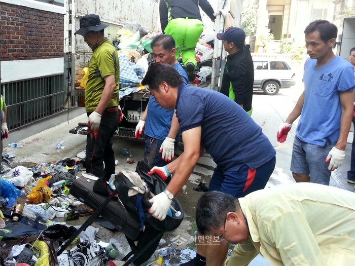 지난 4일 서울 서대문구 북가좌2동은 지역내 직능단체 회원과 주민, 직원 등 60여명이 참여해 증가로23나길 7-4 일대에 방치된 쓰레기 더미를 치우는 환경정비활동을 실시했다. 사진은 관계자들이 쓰레기를 치우고 있는 모습.(사진제공=서대문구청)