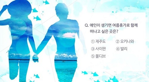 여름이벤트 참여방법은 홈페이지에서 ‘애인이 생기면 여름휴가로 함께 떠나고 싶은 곳은?’ 질문에 대한 답변을 선택한 뒤 신청절차를 완료하면 된다.