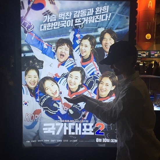 그는 2일 자신의 SNS에 ‘국가대표2’ 시사회 인증샷과 함께“부랴부랴 촬영끝나구 시사회 도착 #국가대표2#내사랑나의사랑 #수애 쪽”라는 글과 함께 한 장의 사진을 게재했다.