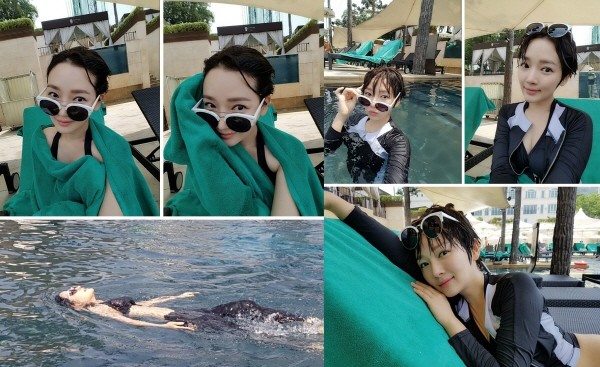 '멀리 갈 정도의 여유는 못되지만~ 아쉬운 대로 서울 시내에 있는 수영장 당일치기 휴가^^ 따뜻한 햇살과 시원한 물.. 좋구나...... 모두들 사랑하는 사람들과 함께~ 즐거운 휴가 다녀오세염~~^^♡ with 요시모토 안경, 선글라스'라며 오랜만에 꿀맛 같은 휴식을 취하는 일상이 눈길을 끈다.