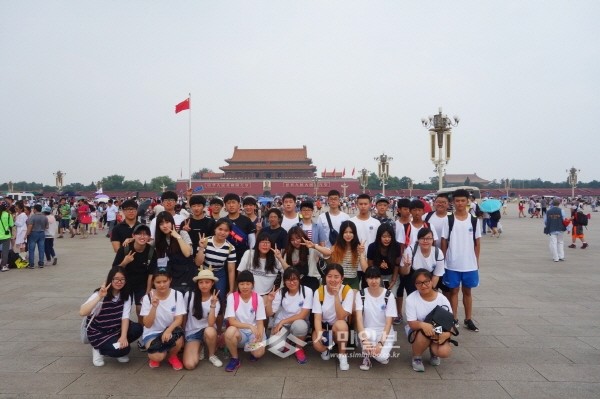 서울 구로구 청소년 16명이 '청소년 해외교류 사업'의 일환으로 지난 8일까지 6박7일간의 일정으로 구의 해외 자매결연도시인 중국 베이징시 통주구를 방문했다. 사진은 학생들이 중국 베이징시 톈안먼 앞에서 기념촬영하는 모습.(사진제공=구로구청)
