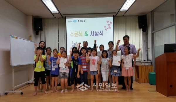 최근 서울 은평구 구립도서관은 지역내 초등학교 3·4학년생을 대상으로 운영한 2016년 여름 독서교실 '더불어 사는 우리'의 수료식을 개최했다. 사진은 참가 학생들이 기념촬영하는 모습.(사진제공=은평구청)