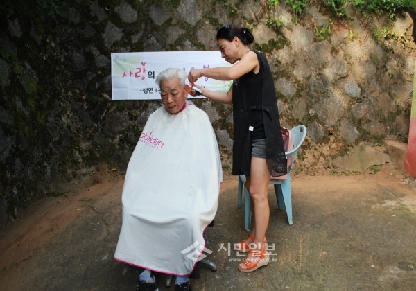 지난 9일 경기 동두천시 생연1동 주민자치위원회는 지역내 경로당을 방문해 생활형편이 어려운 노인들에게 사랑의 이·미용 봉사를 했다. 사진은 위원회 관계자가 노인의 머리를 손질하는 모습.(사진제공=동두천시청)