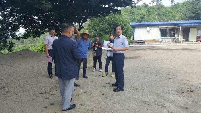 지난 8일 민천식 경기 포천시장 권한대행은 포천시 영중면과 영북면 소재 환경관련 주요시설을 방문해 환경오염행위를 현장에서 직접 확인했다. 사진은 민 시장 권한대행(오른쪽)이 설명을 듣는 모습.(사진제공=포천시청)