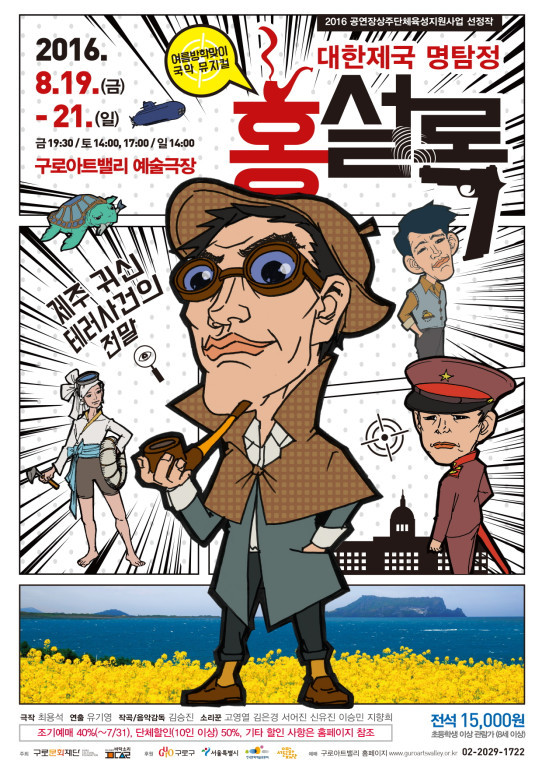 12일 구로구에 따르면 ‘대한제국 명탐정 홍설록’은 구로문화재단과 국악전문예술단체 ‘판소리공장 바닥소리’ 주최, 구로구, 서울시, 서울문화재단, 한국문화예술위원회가 후원하는 이번 공연은 일제강점기 제주해녀 항일운동을 소재로 한 뮤지컬로 주인공 홍설록이 의문의 귀신소동을 해결하는 내용을 담은 추리물이다.