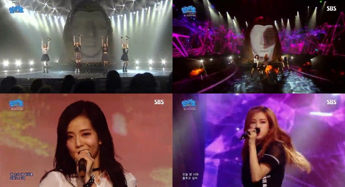 YG엔터테인먼트의 신인 걸그룹 블랙핑크가 14일 오후 3시 40분에 방송된 SBS '인기가요'에서 성공적인 데뷔 첫 무대를 마쳤다.
