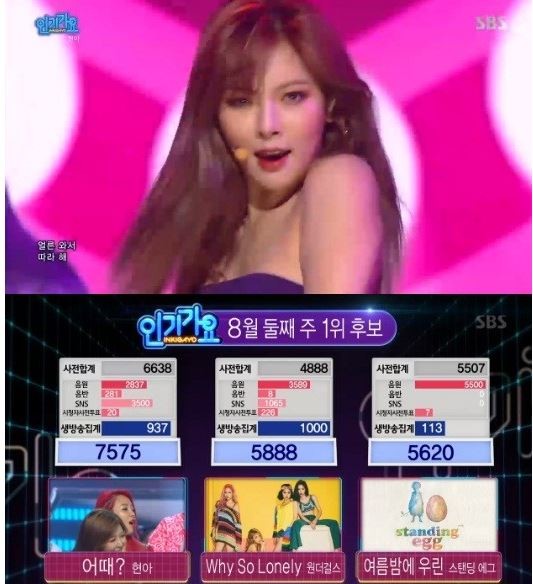 반면 일부 누리꾼들은 "현아는 가수라하기에는 넘심하게 입만 벙긋하던데(hyuk****)" "버블팝같은 노래가 차라리 낫지.. 솔직히 가면갈수록 노래는.. 절레 의상과 퍼포먼스에만 치중하는것 같다는 의견 있었는데 동감(yyil****)" "1위도 했으니까 노래연습 열심히 가창력 좀 늘리길(hamo****)"등의 다양한 반응을 보이기도 했다.