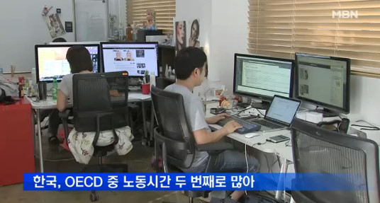 최근 OECD의 ‘2016 고용동향’에 따르면 2015년 기준 국내 취업자 1인당 연간 평균 노동시간은 2천113시간으로 OECD 회원국 34개국의 평균인 1천766시간보다 347시간 많았다.