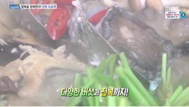 전복오골계는 새까만닭으로 그 안에 버섯에 전복까지 넣어 특별한 보양식을 찾는 이들에게 훌륭한 보양식을 선사한다.