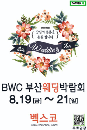 BWC 부산 웨딩 박람회는 결혼과 관련한 정보를 제공하는 것으로 웨딩 주얼리 브랜드, 여행사, 가전/가구 등 다양한 업체가 참여할 예정이다. 또 홈페이지에서 사전 관람 등록을 하면 추첨을 통해 영화 관람권, 토스트기 등을 랜덤으로 증정한다.
