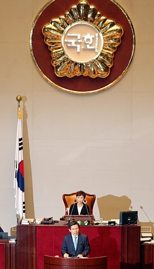 황교안 국무총리가 16일 오전 국회 예결위회의장에서 열린 추경예산안 처리를 위한 예산결산특별위원회 전체회의에서 보고를 하고 있다.