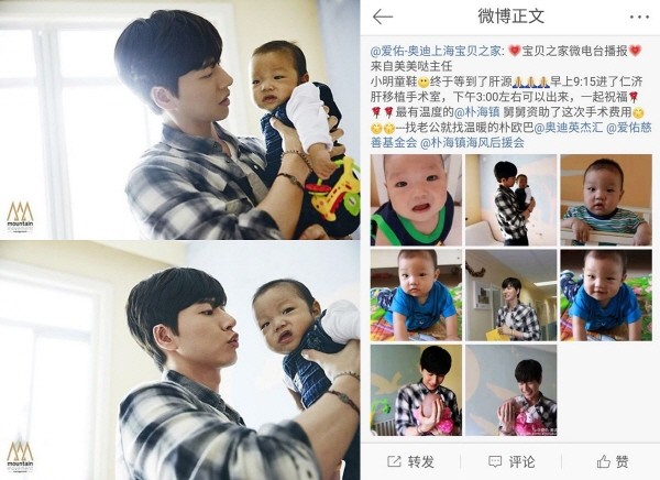 지난 15일 중국 상해아동복지센터 공식 SNS에는 박해진이 기부한 금액으로 소명이란 이름의 환아가 15일 오후 5시(중국시간) 간 이식 수술에 성공한 소식이 전해졌다. 이 어린이는 일치하는 간을 기다려 왔으며 오랜 기다림 끝에 드디어 수술을 받았다.