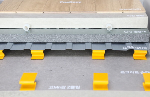 포스코의 월드퍼스트(World First) 강종인 고망간강은 방진성능이 일반강보다 약 4배 가량 높아 바닥에 충격이 가해질 때 고망간강으로 제작된 패널이 진동에너지를 흡수해 전달되는 소음을 현저히 줄일 수 있다. 또 기포콘크리트 타설도 불필요해 공기를 단축시키는 것은 물론 건물 바닥의 두께도 줄일 수 있어 시공력도 향상시킬 수 있다.