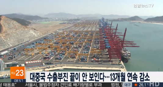 이 같은 결과로 우리나라의 월별 대중국 수출은 지난해 7월 -6.5%를 시작으로 13개월 연속 마이너스를 유지하고 있다.