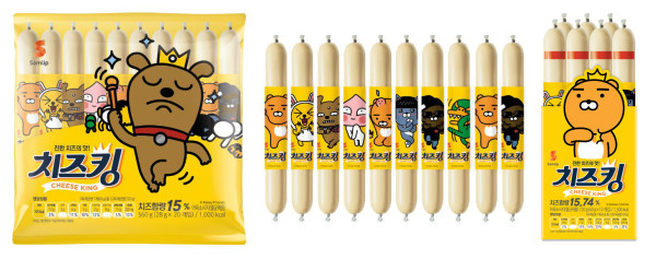 삼립식품이 이번에 출시한 ‘치즈킹’은 카카오프렌즈의 캐릭터인 라이언, 어피치, 네오, 무지&콘, 프로도, 튜브, 제이지 총 여덟 가지의 캐릭터를 패키지에 활용한 어육 소시지 제품이다.