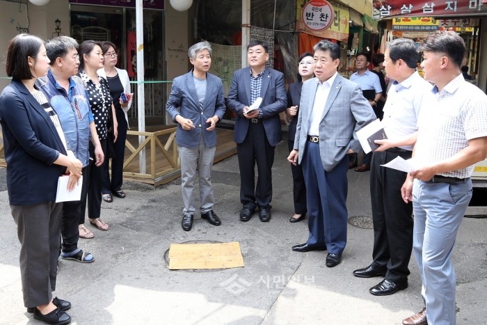 광명시의회 의원들, 광명새마을시장 공사현장 방문