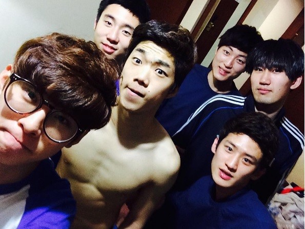 이대훈은 사진 속에서 동료들과 함께 카메라를 바라보며 장난기 넘치는 표정을 짓고있다. 특히 그의 새하얀 피부와 또렷한 이목구비는 '꽃미남 스타' 다운 이미지를 나타내기에 충분하다.